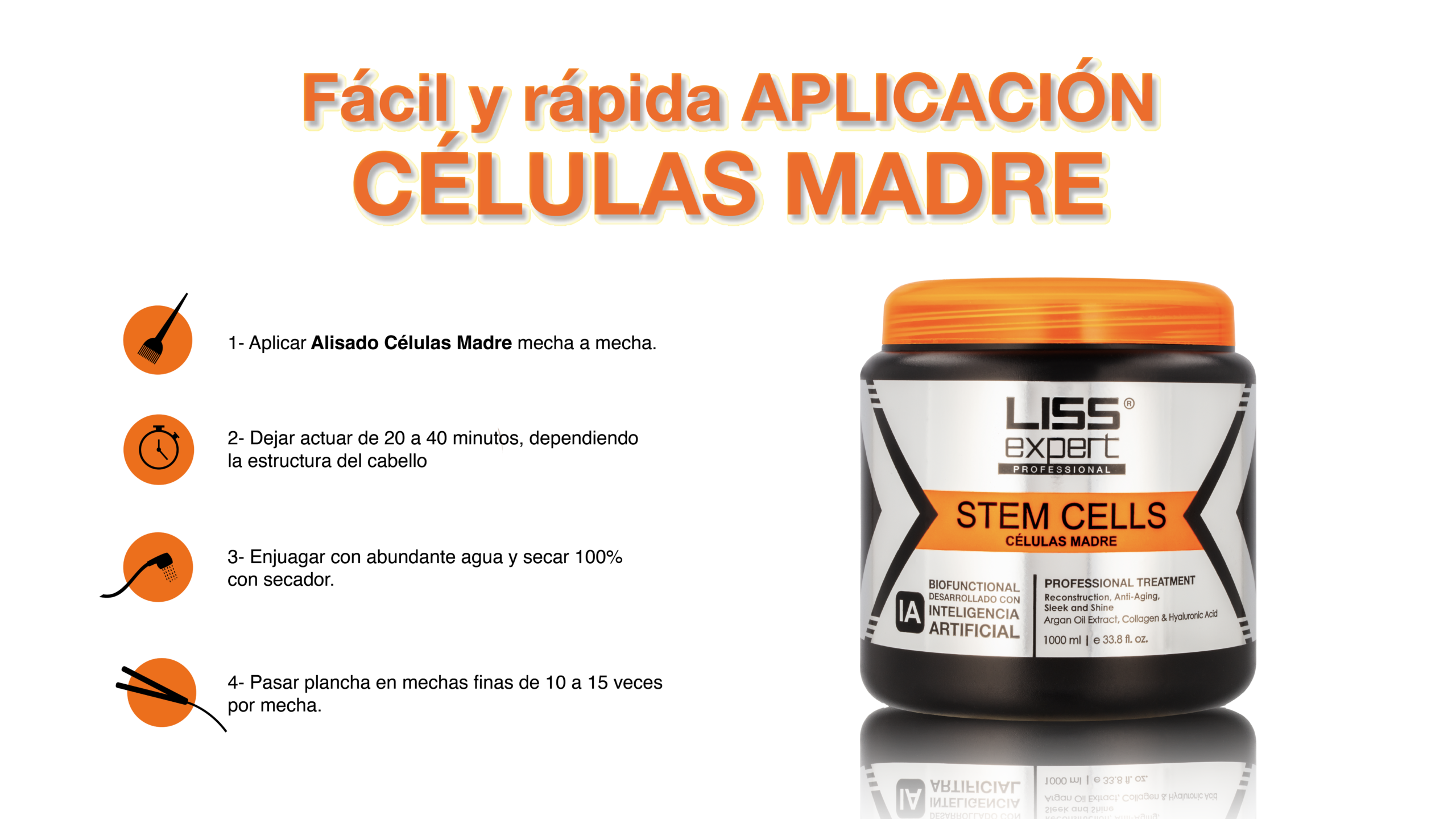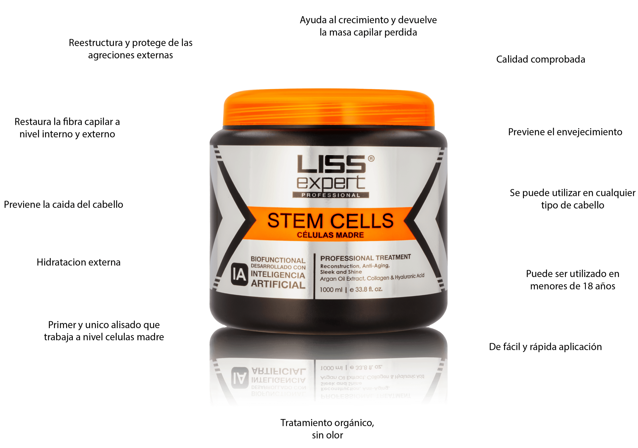 Protege contra el daño por calor, realza el brillo, repara y restaura el cabello dañado evitando que se quiebre. Para todo tipo de cabello.